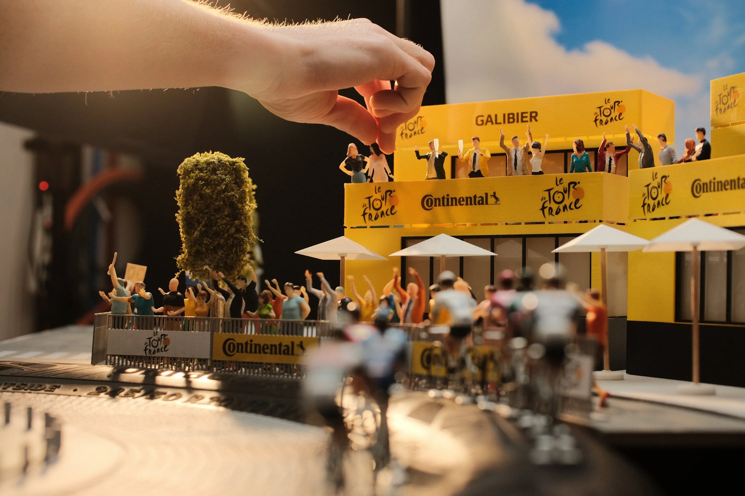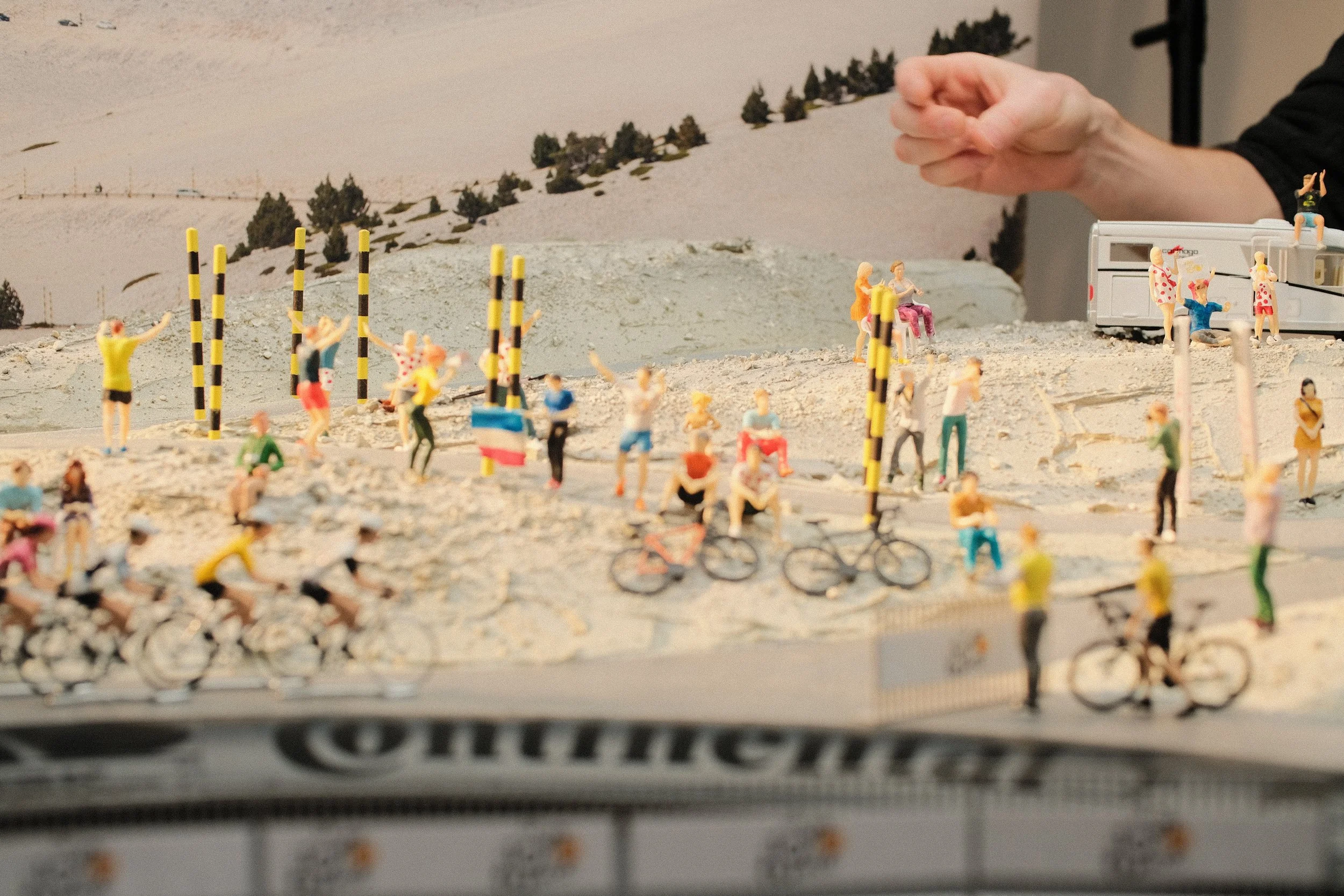 As a way to do this, we chose to recreate different ‘worlds’ (typical scenes from TV) of the Tour: Tour caravan, mountains, roundabout, French village, finish straight.